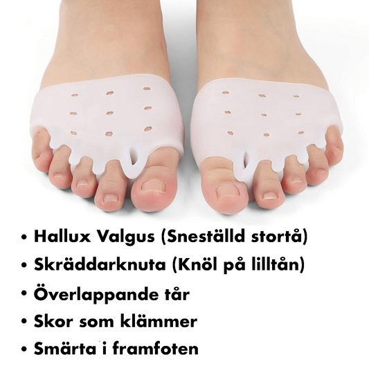 - Tåseparerare: Hjälper till att hålla stortån i rätt position och minska obehag.