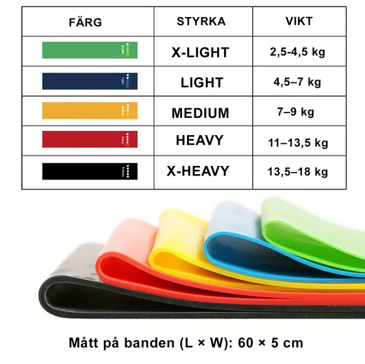 5-pack Träningsband för Helkroppsträning – Hemmagym, Fitness, Yoga & Pilates