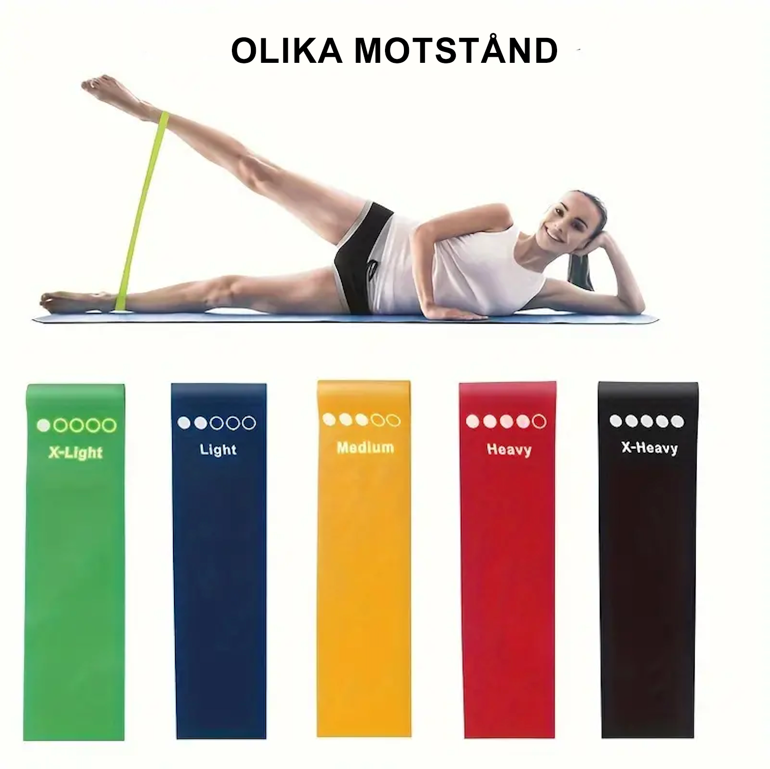 5-pack Träningsband för Helkroppsträning – Hemmagym, Fitness, Yoga & Pilates