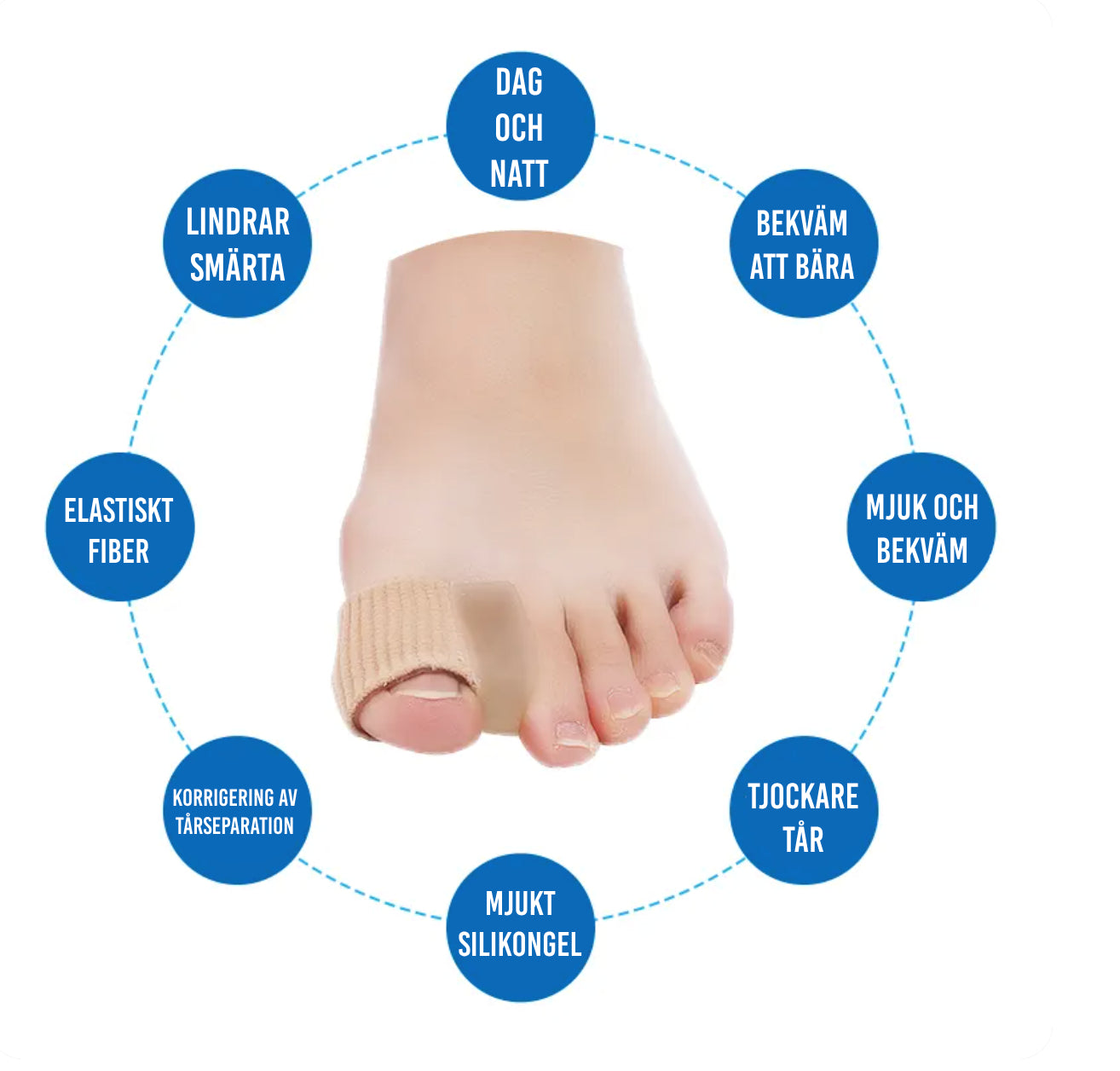 Två bekväma tåseparatörer som placeras över dina stortår för att minska eller förhindra obehag orsakat av hallux valgus. En enkel och bekväm lösning.