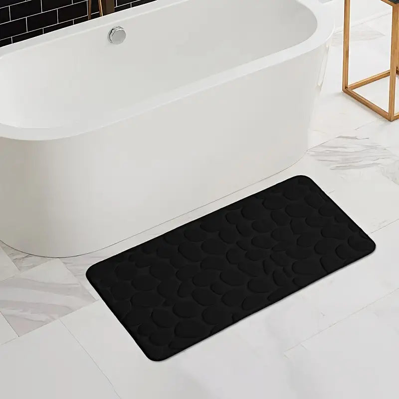 Denna halkfria badmatta med låg pile erbjuder hög vattenabsorption och är perfekt för att hålla badrummet torrt och säkert. Tillverkad i slitstarkt material och enkel att hålla ren med maskintvätt.