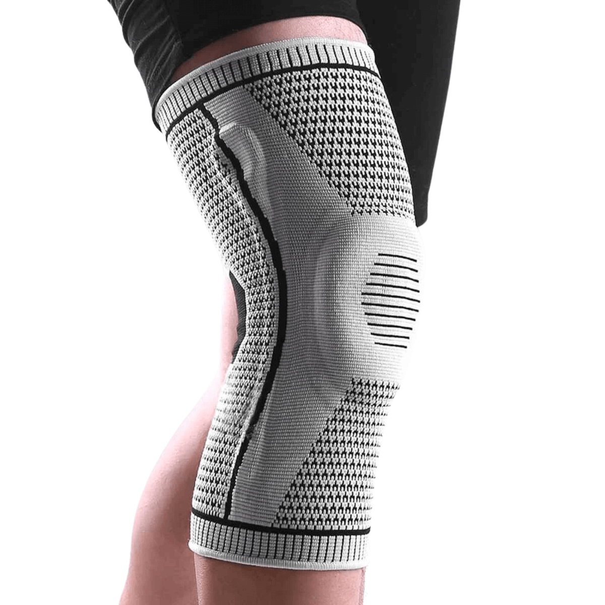 Ett bekvämt och stödjande knäskydd utrustat med fjädrar för extra stabilitet och ett silikonskydd runt patella för att ge optimal dämpning och skydd. Perfekt för sport, träning eller vardagligt bruk för att avlasta och stärka knäleden.