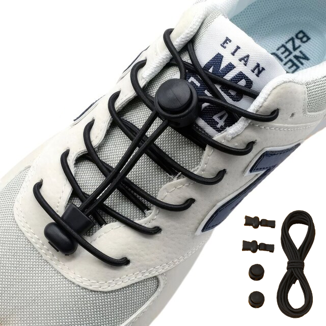 De knytfria elastiska skosnörena finns i en stilren svart färg, som enkelt matchar med olika typer av skor och klädstilar.