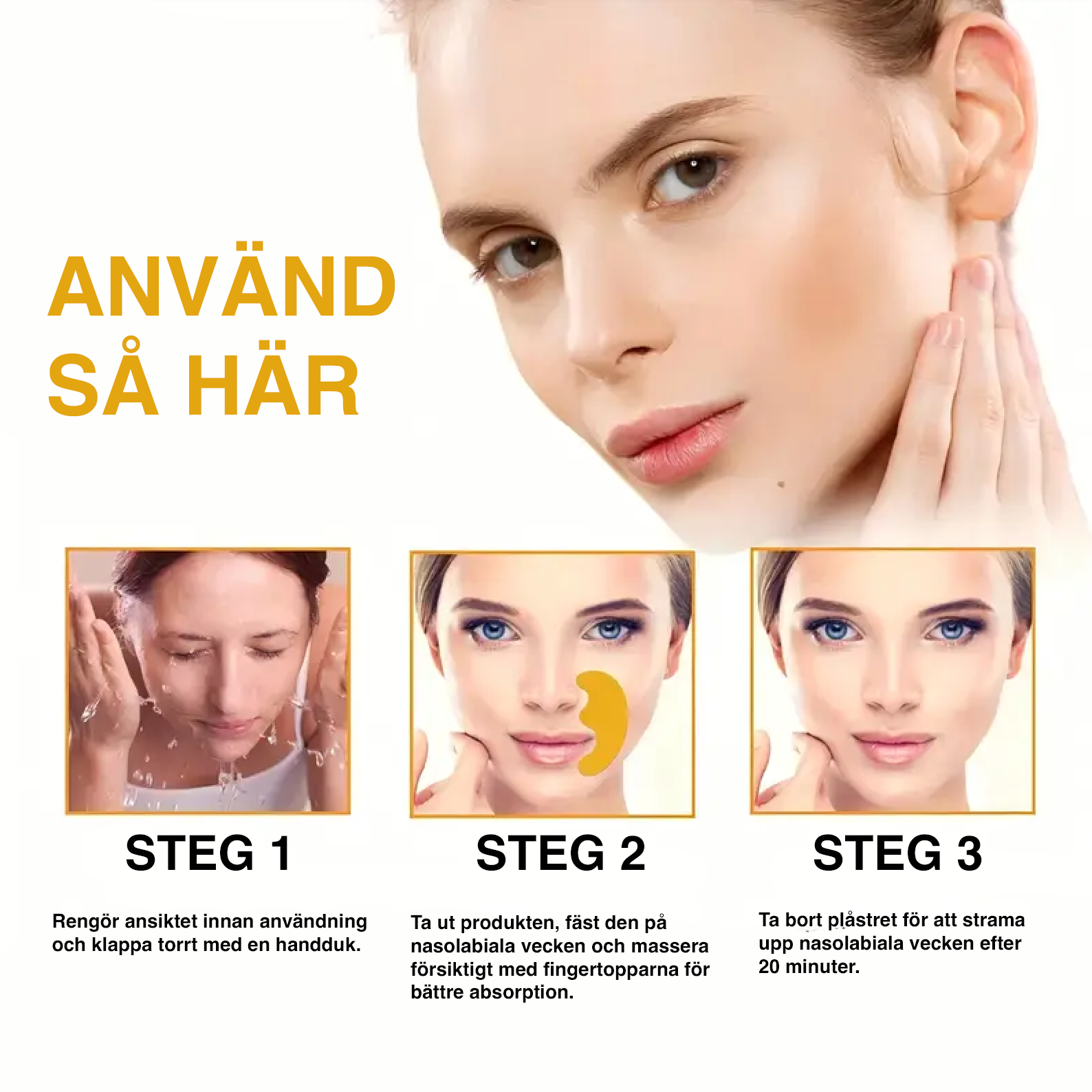 Dessa 10 st rynkutjämnande plåster för näsa och läppar återfuktar och slätar ut huden. Alkoholfritt och skonsamt för alla hudtyper, det ger en ungdomligare och mer jämn hudstruktur.