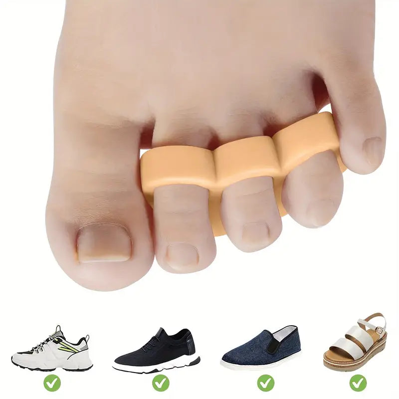 Våra silikon tåseparatorer (1 par) är utvecklade för att förbättra komforten i dina skor och ge avlastning för trötta eller ömma fötter. De hjälper till att separera tårna, vilket minskar friktion, tryck och risk för blåsor.