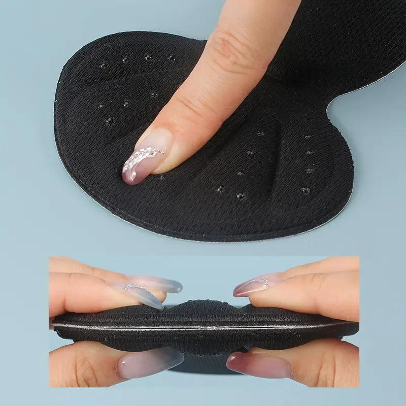 Kuddarna är tillverkade av mjukt, slitstarkt material och har en självhäftande baksida som gör dem enkla att applicera i dina skor. De sitter på plats hela dagen och kan användas i: